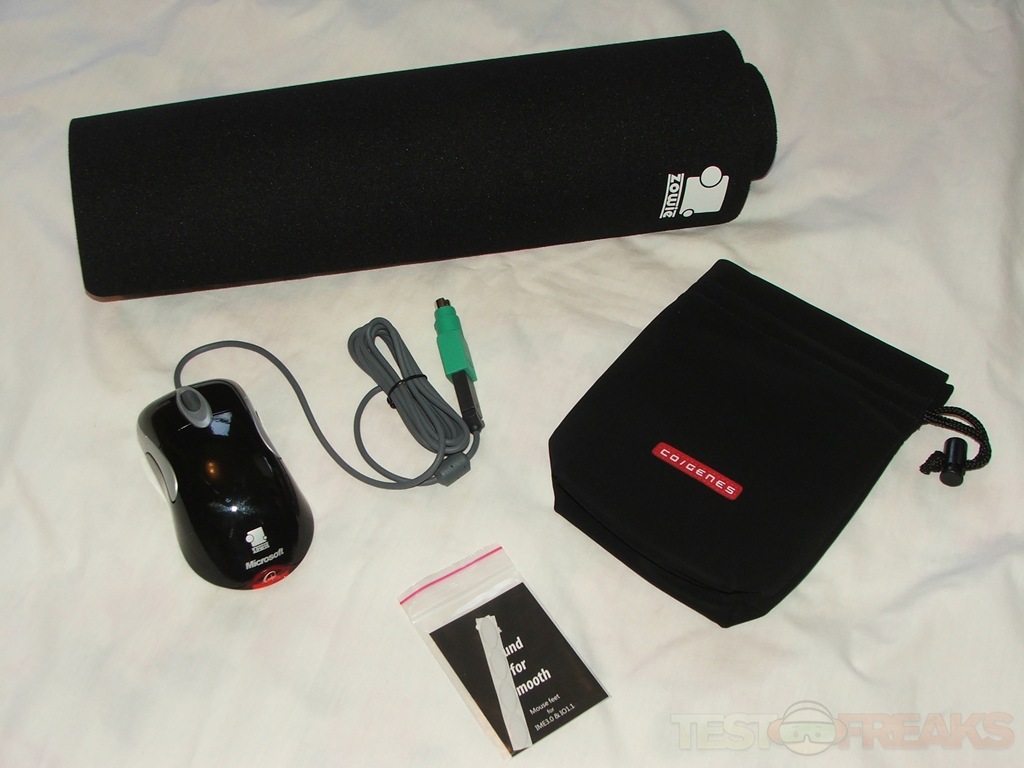 Zowie Gear is a relatively new company, especially in the states, they specialize in gaming gear like mousepads, headphones, skates and mice. They sent me over their new IO1.1 Professional Gaming Bundle for review which consists of a mouse carrying bag, large mousepad, skates and a re-painted Microsoft Intellimouse. The Intellimouse is an optical mouse that is very popular with gamers, touted as one of the best out there from what I’ve read, so I was curious to get to try it out.