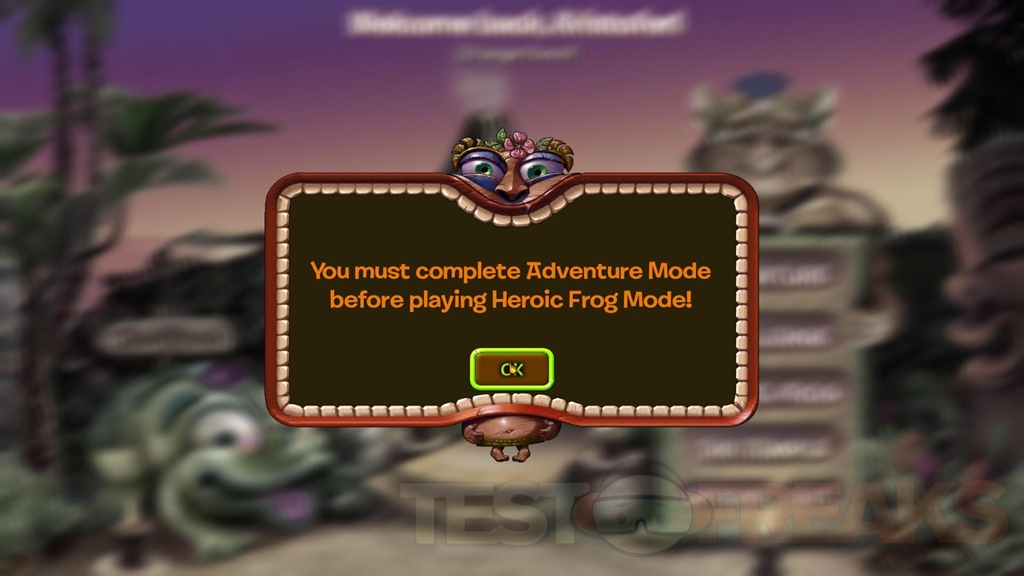 On the menu screen you’ll find several choices for game play: Adventure, Challenge, Heroic Frog and Iron Frog. Some of these won’t be available though until you complete the Adventure Mode.