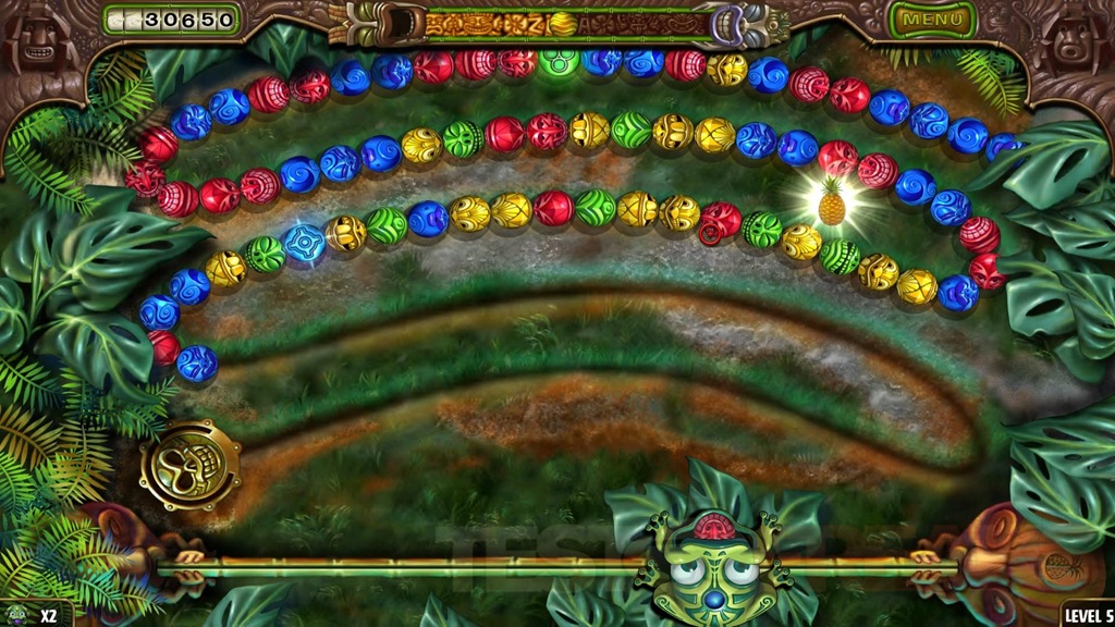 Enter an all-new world of Zuma where evil tiki bosses rule the land! Conquer over 60 levels by firing stone spheres to make matches and destroy the deadly stream of balls, then take on six tiki boss battles and guide your agile amphibian to victory!